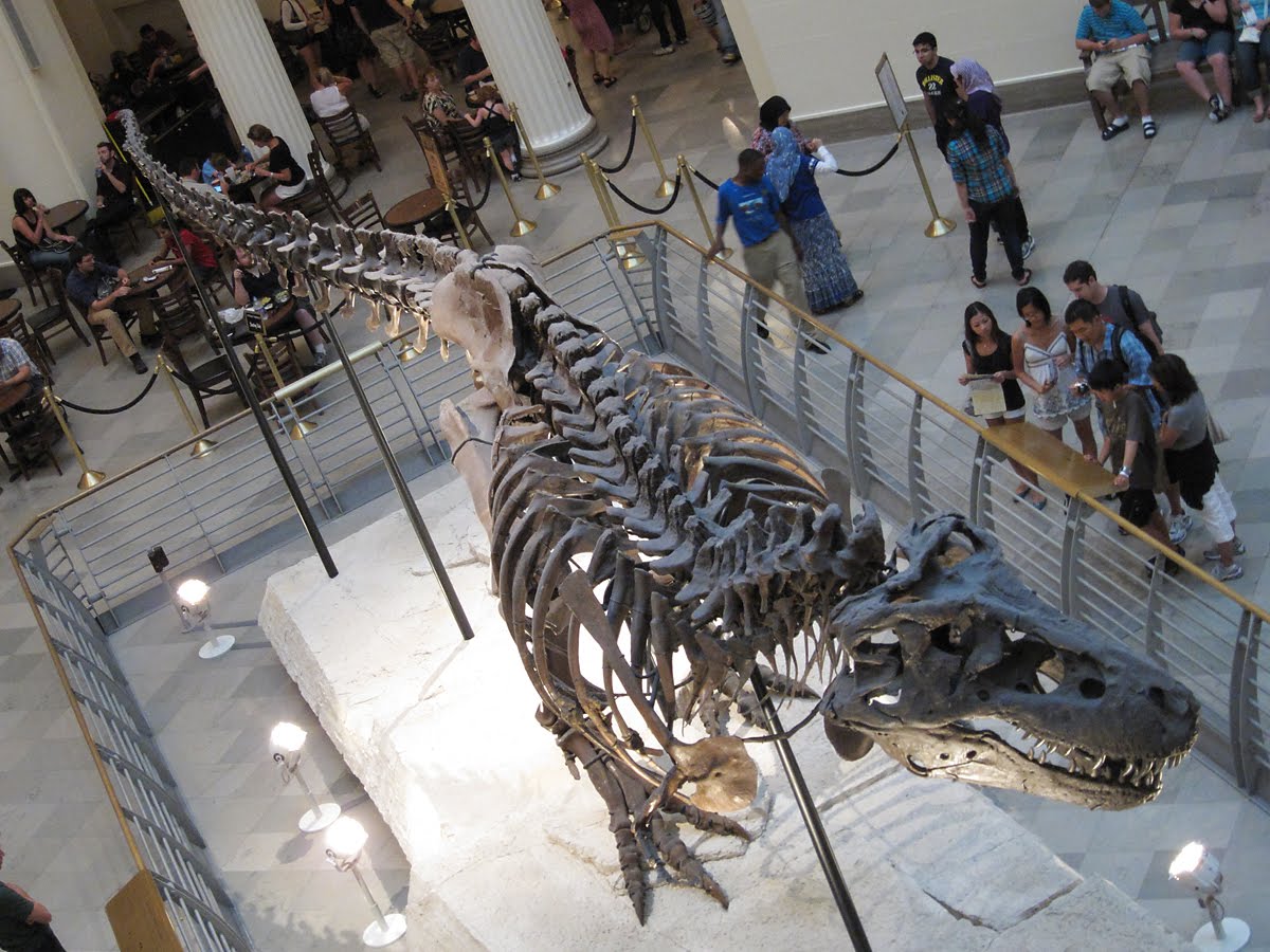 My move to Chicago is almost completed. Although I have been working here for a month, this was the first weekend I've been in the city. I took a stroll across downtown and through Millennium Park to the Field Museum. I also happened to have a new camera, a Canon S95. My G6 is still a capable performer after X number of years (6?) but it is not very pocketable. The S95 is not the tiniest camera available, but it is much thinner than a G6. But it appears I have to upgrade my software. I had to jump through some extra hoops to edit the images. I met a fellow South Dakota transplant at the Field, a Tyrannosaurus Rex named Sue. From ground level she really didn't seem that huge for some reason, but from above you get an idea of her scale. Click on the image for a larger versions. Here another photo from the stroll, Buckingham Fountain, before it started raining.  |
