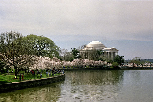 It's cherry blossom season in Washington, DC. During my career as a faceless bureaucrat, I traveled to DC and northern Virginia many times, and on a few occasions my visits coincided with the annual Cherry Blossom Festival around the Tidal Basin and Jefferson Memorial. The first two images are from decades ago but I just posted them today. Image #1 was scanned from negative film and was taken the weekend of April 1-2, 1989. Image #2 was taken with one my first digital cameras, the Kodak DC290, on April 4, 2001. The third image was taken with the Powershot S95 (a camera I still use) on April 10, 2014.