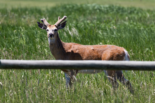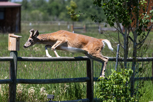 Also, the deer with the lopsided antlers showed in the yard for the third straight year. I think he is blind on the right eye, so there much have been some sort of injury a few years ago. But he is still capable of taking the fence.