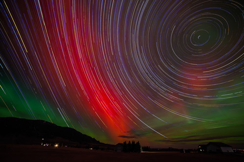 ![]() Northern Lights over Red Lodge Mountain, Montana. Stack of 30-second images over 8 hours and 10 minutes. (2025-11-12) |