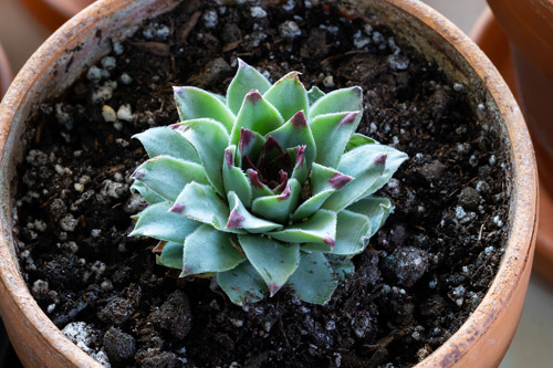 ![]() Sempervivum, unknown variety, purple-tipped leaves. (#4 of six unknown varieties of Sempervivum in Jan. 29 shipment.) (2026-01-30) |